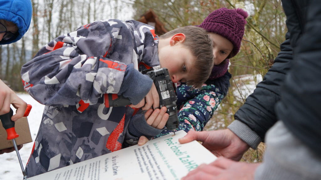 • Mrtvé dřevo je plné života. V našem lese neodklízíme všechny prořezané a mrtvé stromy, ale část jich ponecháváme na místě k trouchnivění. V lese se učíme, pozorujeme a bádáme. Zaznamenáváme druhy dřevin, výšku stromů i případná poškození.
